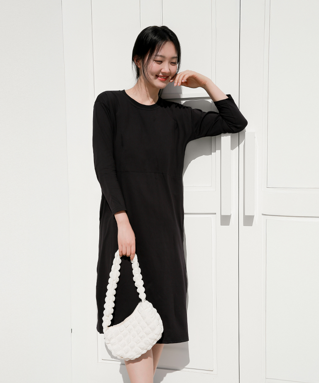 [당일🚛/원피스] 노브라티 편안한 순면 여성홈웨어 잠옷 이너웨어 일체형 브래지어 해방 라운드넥 원피스 (2Size)