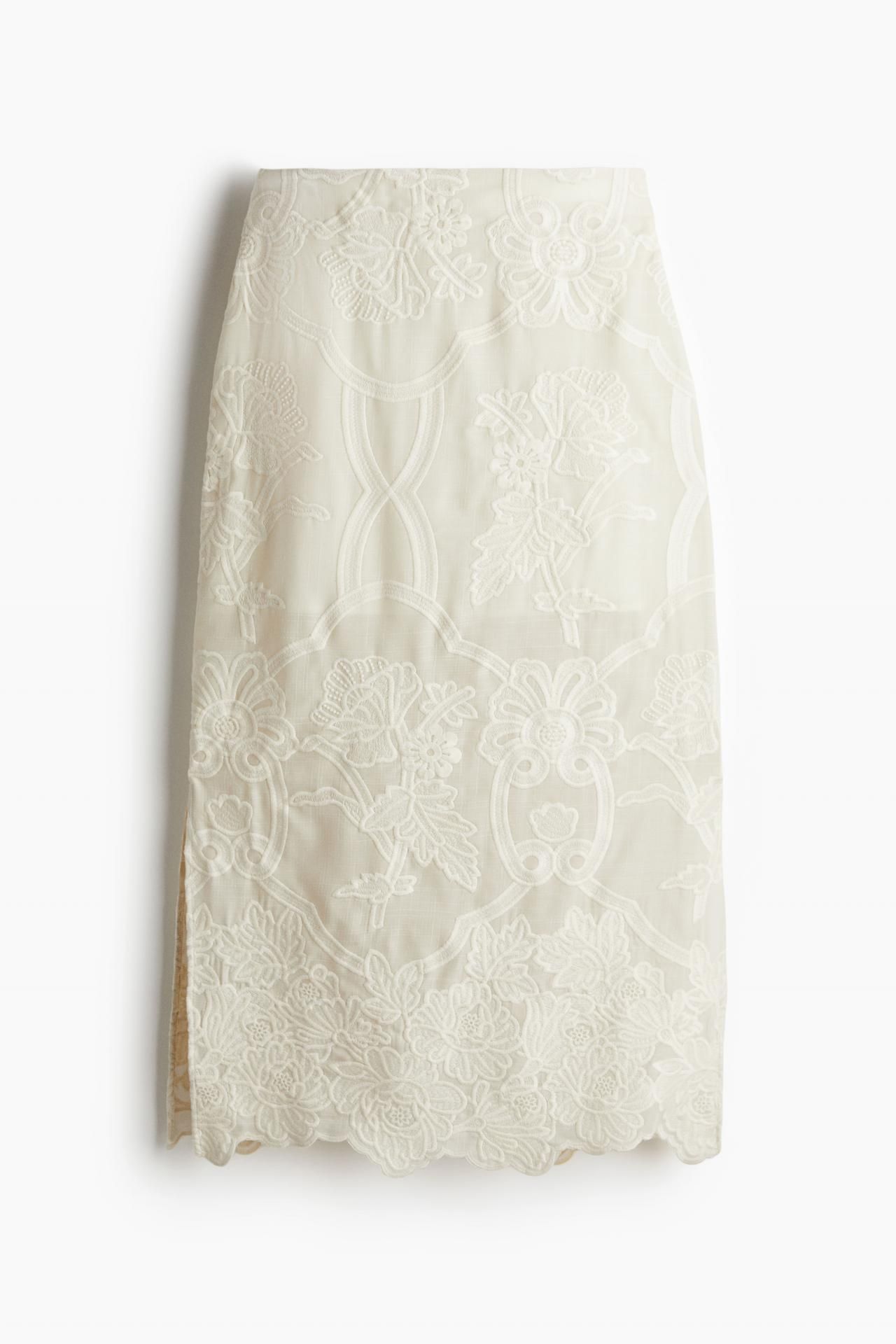 에이치앤엠 자수 펜슬 스커트 1273385001 CREMA