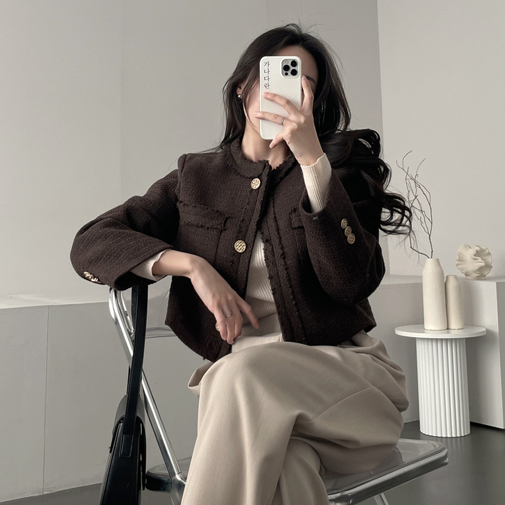 [하객룩✨/탄탄고퀄] 가나다란 비올레 골드 버튼 포켓 트위드 숏 자켓 3color