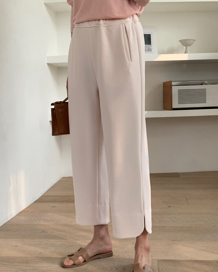 럭키룸 마르 둥근트임 팬츠 여성 일자핏 허리밴딩 9부기장 밑단슬릿 바지(86368)
