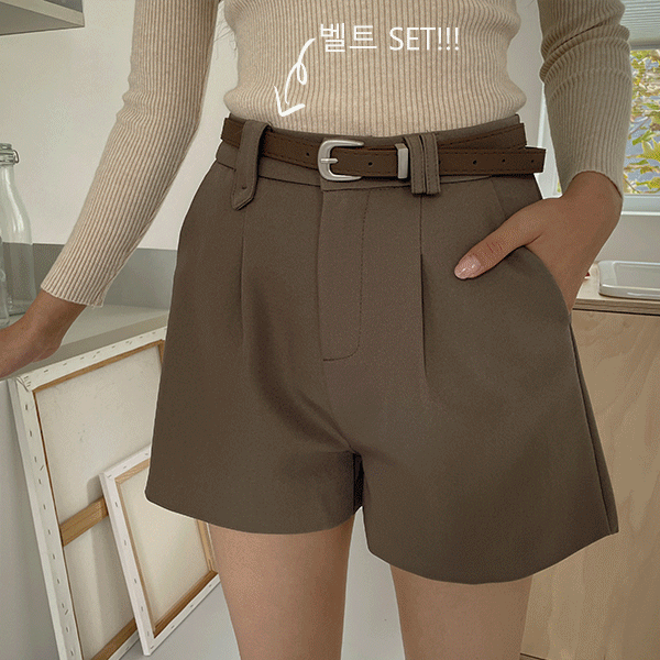 [다리가 길어보이는 최상핏! 리뷰굿👍하객룩&출근룩]에디 슬랙스 하프팬츠&벨트SET/스판n93;/부츠코디/핀턱슬랙스