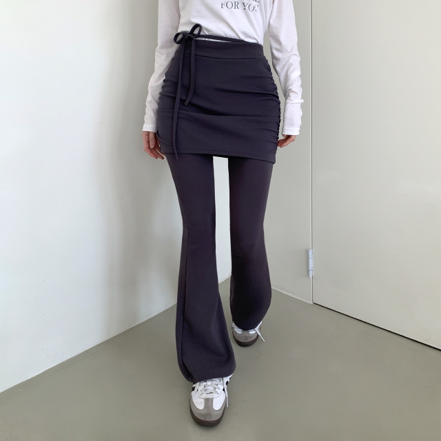 [레이어드!/일체형] 라미 옆셔링 스커트 허리밴딩 레깅스 팬츠 스판 리본 부츠컷 치마 바지