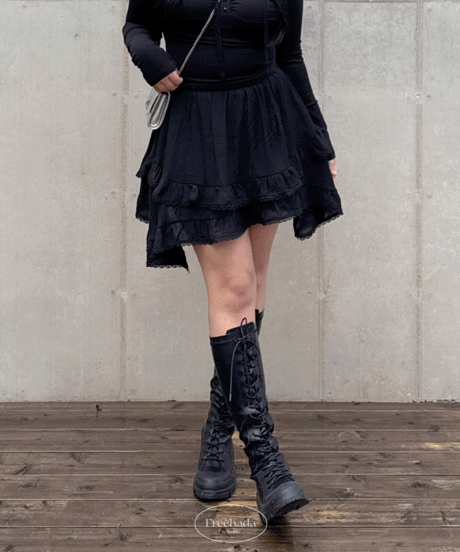 [문의폭주/강추] 썸띵 레이스 언발 밴딩 미니스커트 레이어드스커트 미디스커트 출근룩 레이스스커트