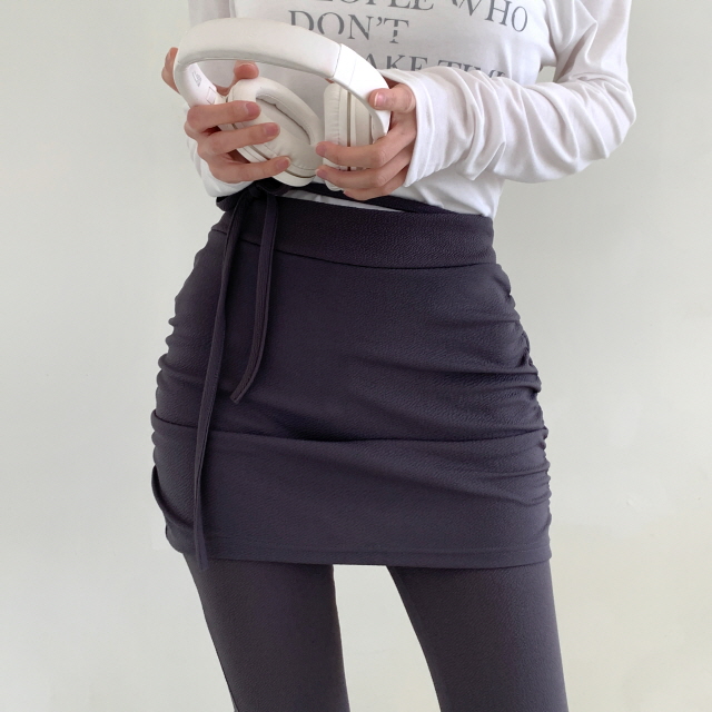 [레이어드!/일체형] 라미 옆셔링 스커트 허리밴딩 레깅스 팬츠 스판 리본 부츠컷 치마 바지