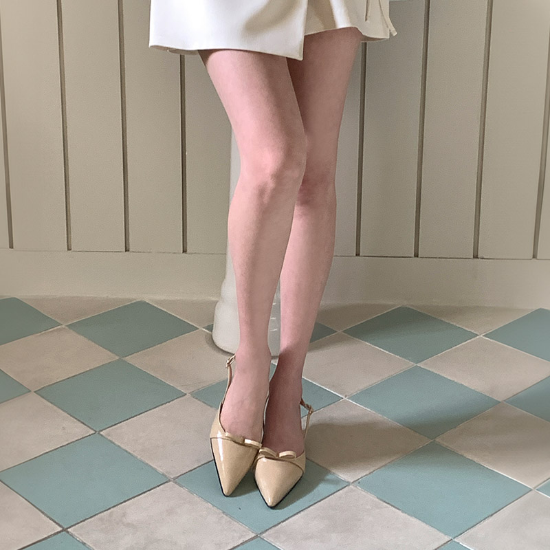 러브앤 금장 리본 스틸레토 구두 슬링백 sh3536