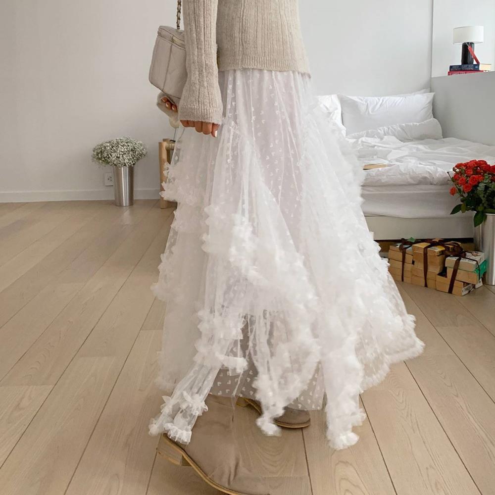 하트 쉬폰 맥시 브라이덜 셀프웨딩 샤스커트 프릴치마
