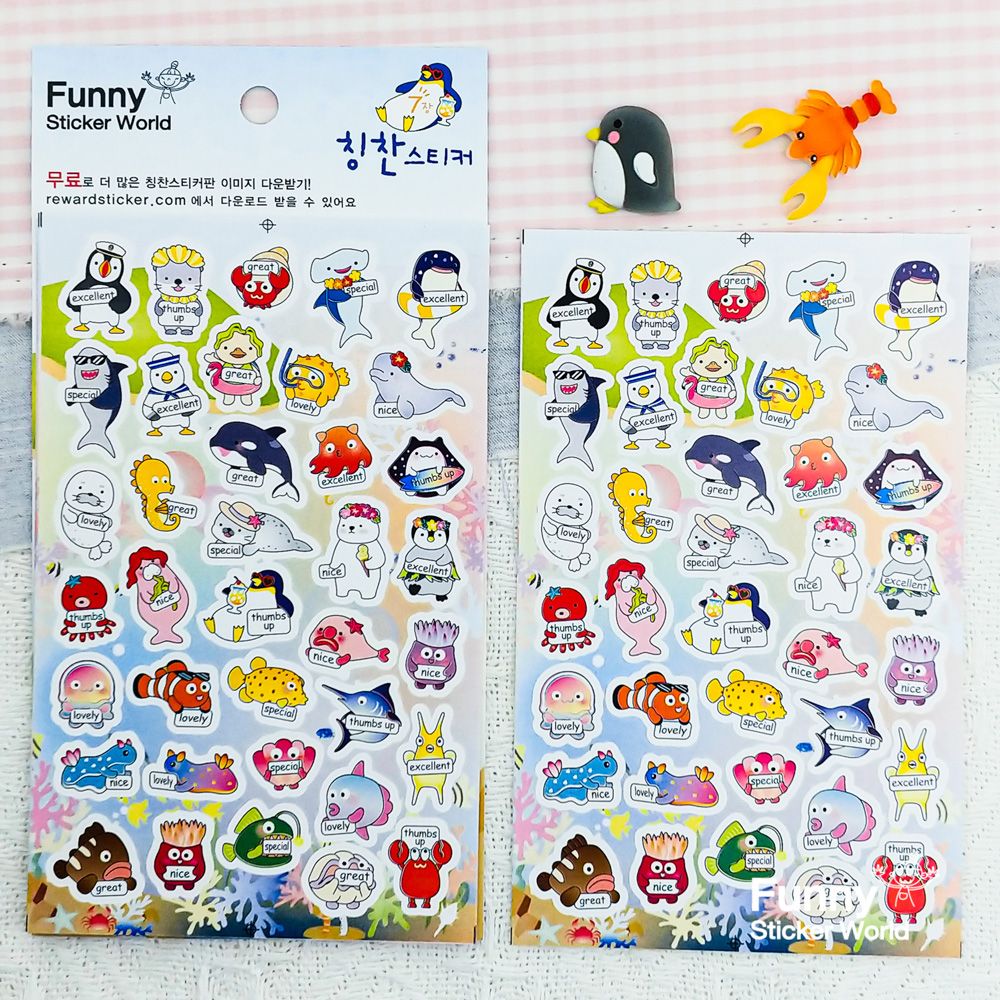 퍼티커 바다생물 칭찬-바다 아트지 스티커 80-13