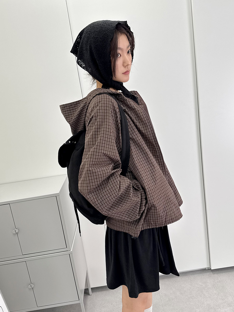 [후드집업/직진배송] 잔체크 투웨이 집업 스트링 후드 바람막이 (3color)
