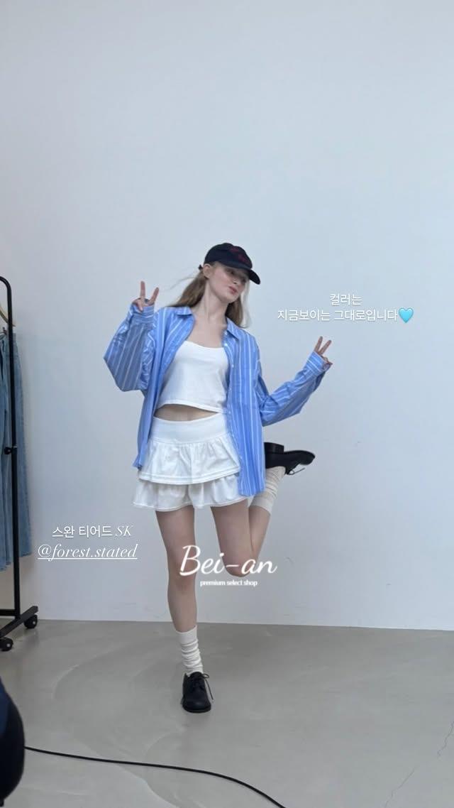 아이 M 당일 / forest 포레스트 스완 티어드 스커트 A라인 밴딩 캉캉 코튼 미니 레이스 치마 (2 color)