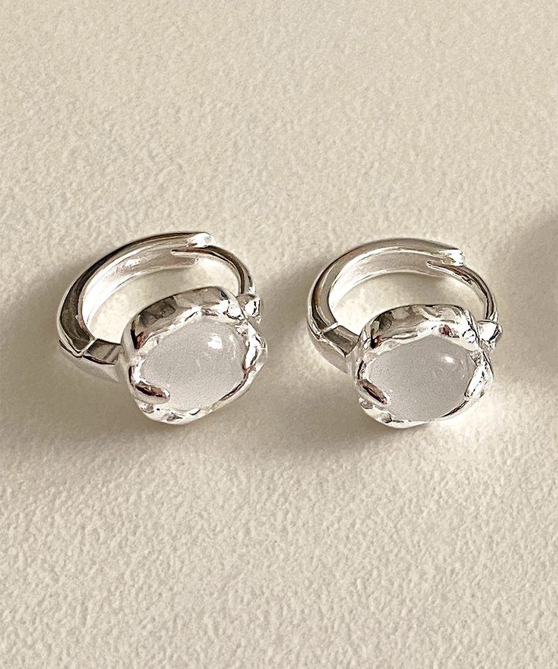 [무배] 실버925 백옥 원석 미니 러프 원터치 링 귀걸이