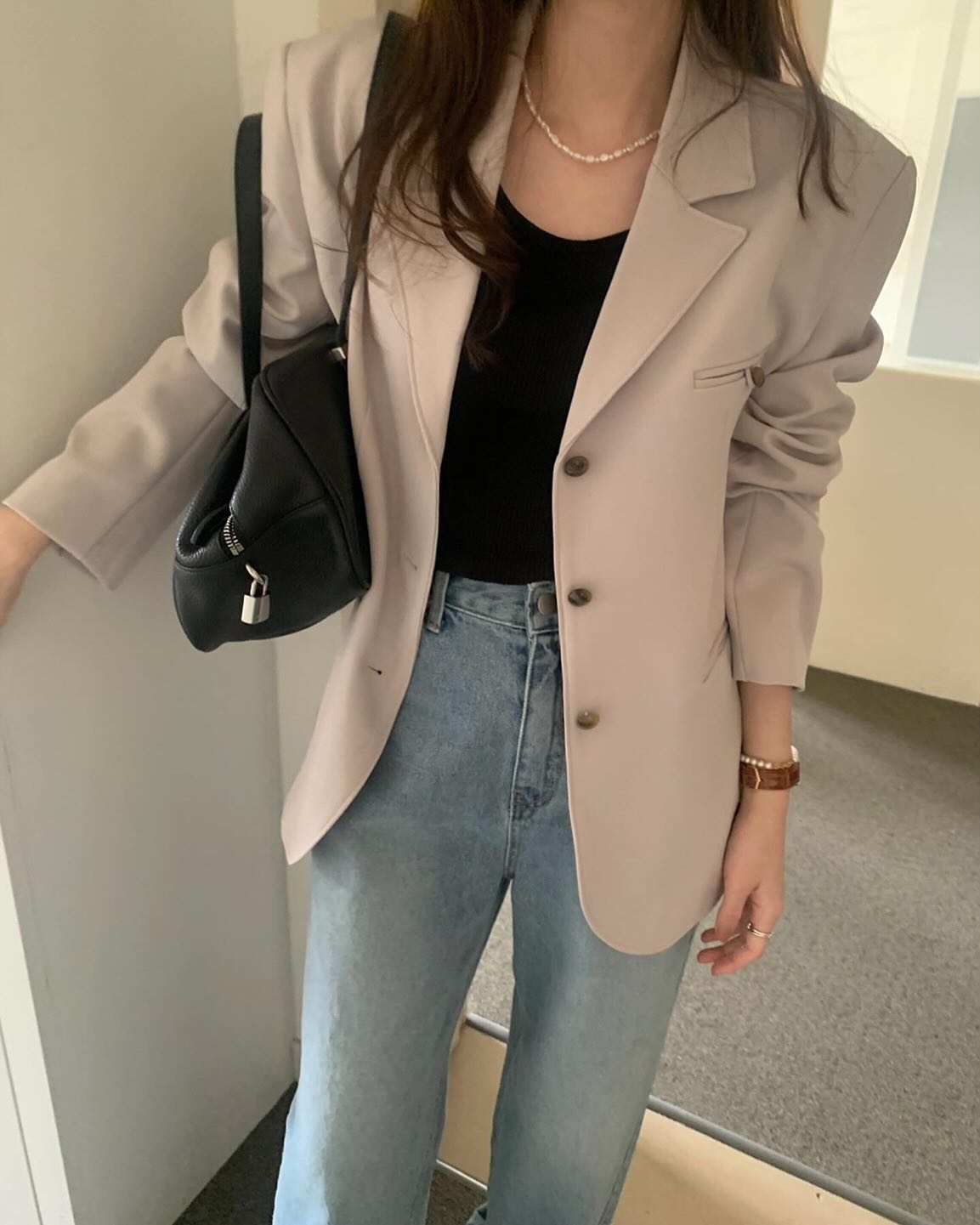 [🤍오버핏자켓] 프리티영띵 버블 버튼 싱글 자켓 2color