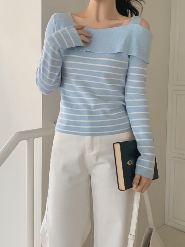 [촉촉소프트/보정핏✧][44-120] 엔하브 스트라이프 언발 오프숄더 니트 (봄-신상-봄신상-데일리-데이트-데일리룩-데이트룩-페미닌룩-오피스룩-출근룩-캐주얼룩-빅사이즈-자체제작-120사이즈-통통녀)