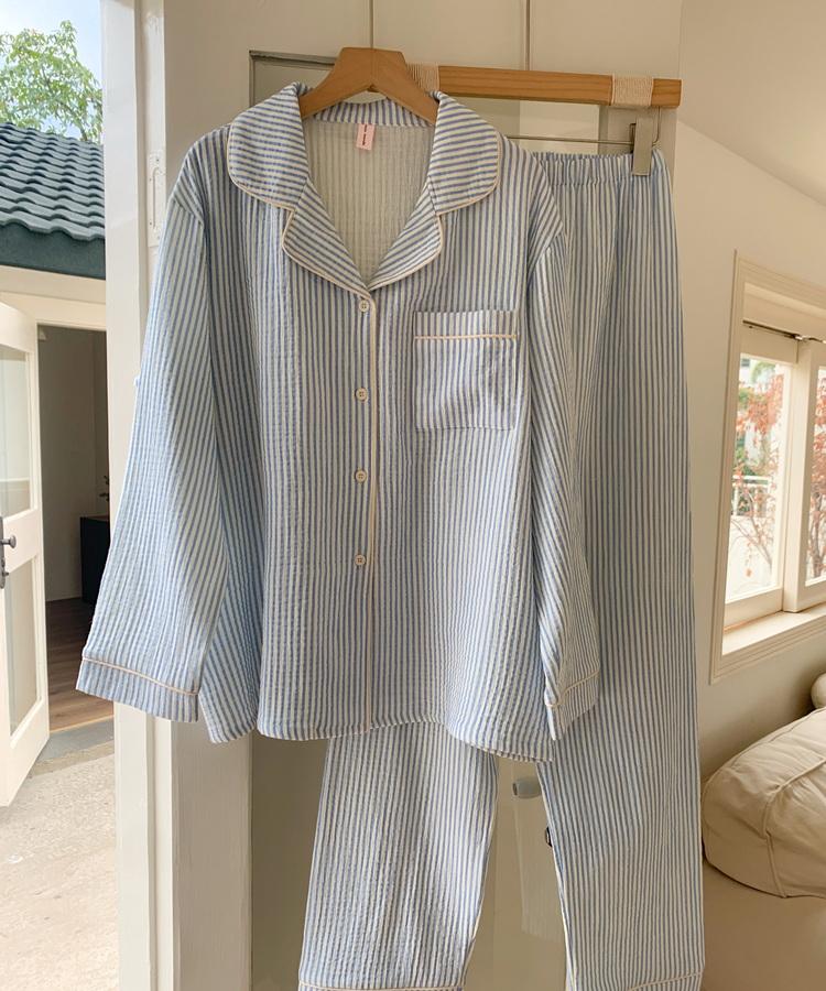 [직진🚀] 스캇 스트라이프 잠옷 커플 파자마 파티 빅사이즈 홈웨어 세트 2type