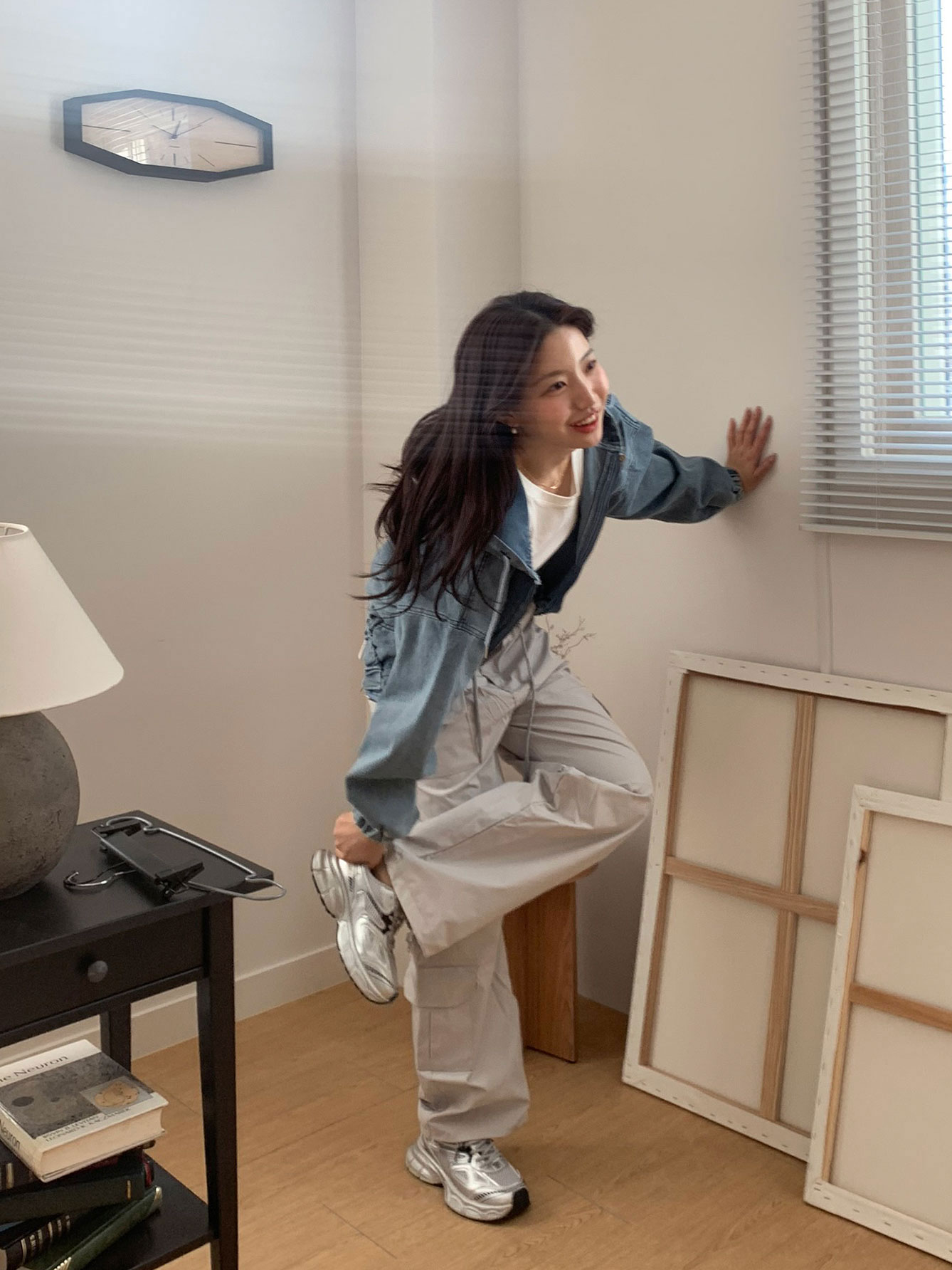 [EFT.] 리키 단추 카고 스트링 와이드 팬츠
