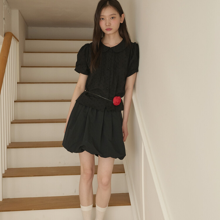 Pin-tuck Balloon Mini Skirt_Black