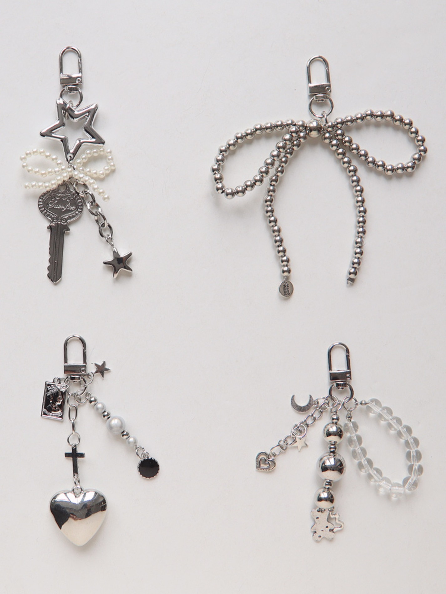[빠른출고]키링 키홀더 비즈 백참 핸드폰줄 가방 꾸미기 실버비즈 믹스 리본키링