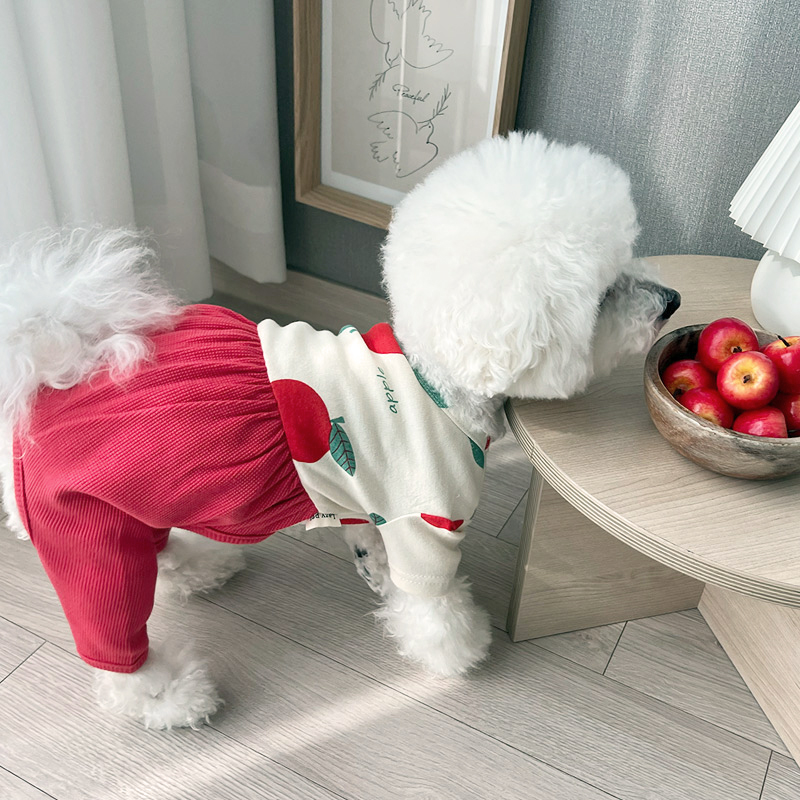 강아지 올인원 애플봉봉 티셔츠 호박 배바지 봄가을 간절기옷