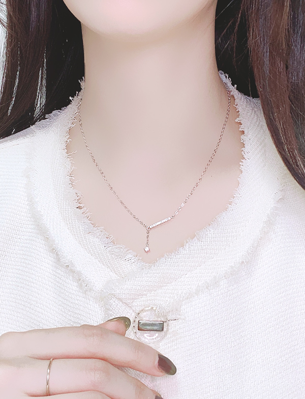 여자 실버 브이 큐빅바 팬던트 드롭 목걸이 포인트 네크리스