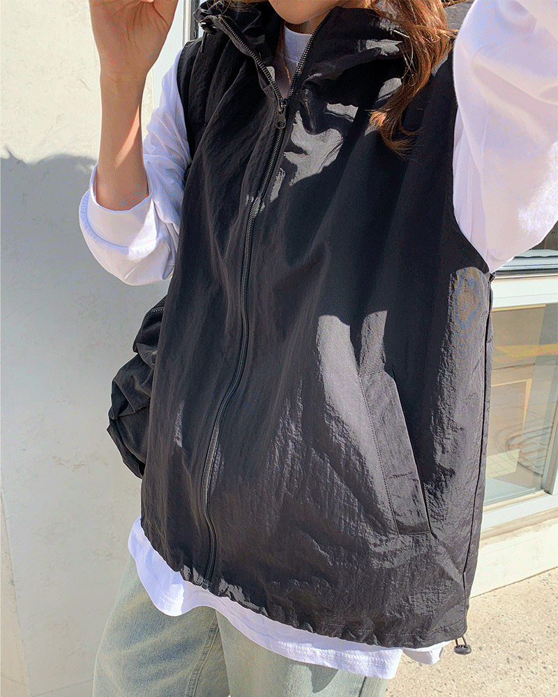 [55~110]신상/데일리룩/점퍼/아우터/집업/투웨이집업/루즈핏/루즈핏점퍼/바람막이/헬스룩/출근룩/통통녀/빅사이즈/추천 엠버바스락후드베스트