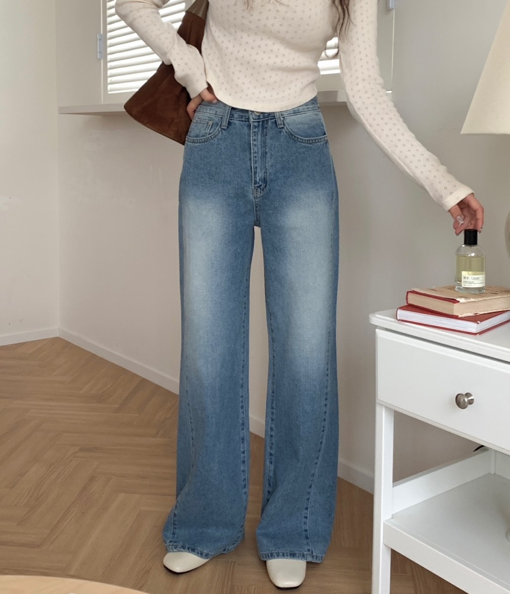 [SALE 당일] 레어썸 201옆절개라인와이드팬츠 와이드청바지 데님팬츠 연청바지