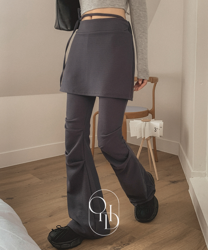 [링클/슬림핏/허리밴딩]몬스 셔링 부츠컷 치마바지-3color(레이어드팬츠/셔링팬츠/브라운팬츠/추리닝/핀턱팬츠/고무줄바지/데일리룩/데이트룩/개강룩/마실룩)
