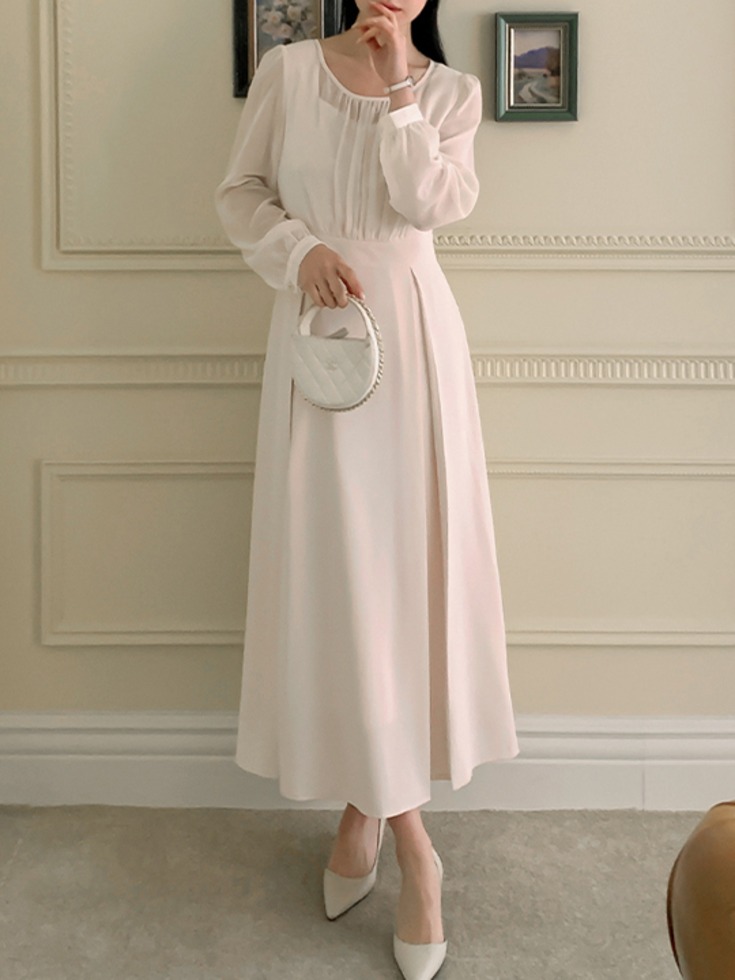 [무료배송][고급미/청순여리♡][44-120] 세뉴디엘 링클 시스루 셔링 롱 원피스 (봄-가을-신상-데이트룩-격식룩-하객룩-소개팅룩-출근룩-데일리룩-페미닌룩-120사이즈-빅사이즈-여성스러운-몸매보정)