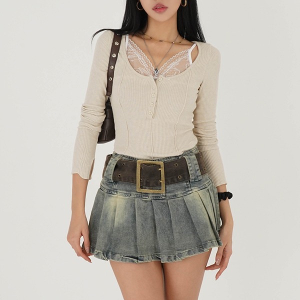 [2C/나시세트] 레이스나시 세트 골지 슬림니트 긴팔티 레이어드룩 레이어드티 슬림핏 레이어드 나시레이어드 페미닌룩 데이트룩
