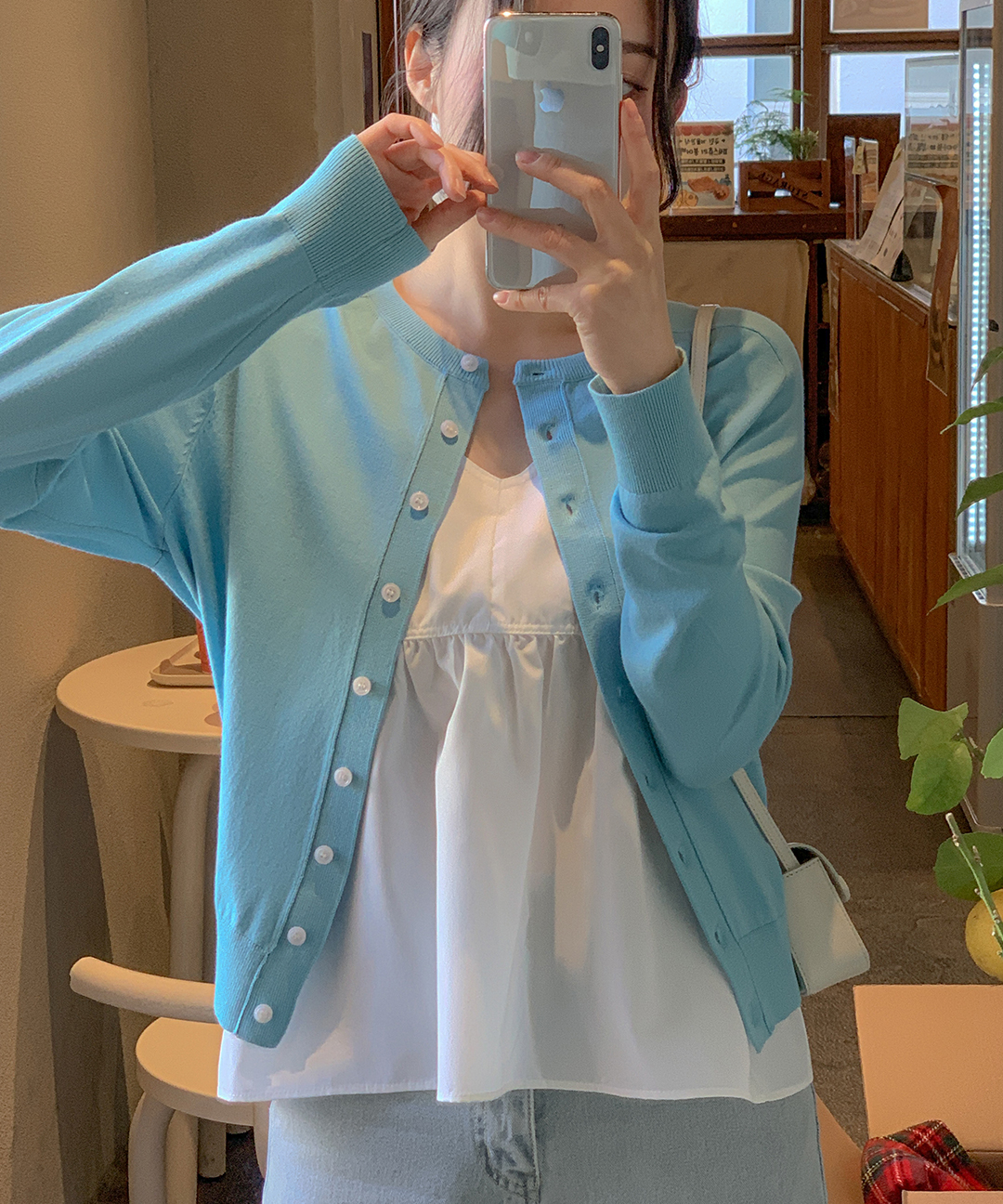 [MADE]루어스 베이직 소프트 자개 니트 가디건 (S-L/데일리룩/개강룩/가을가디건/베이직가디건/레이어드가디건/라운드넥가디건/레이어드)