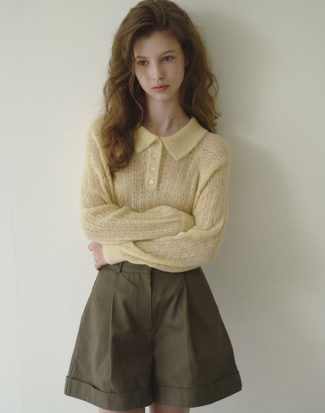 [오브유이] 파스텔 알파카 카라 니트_옐로우