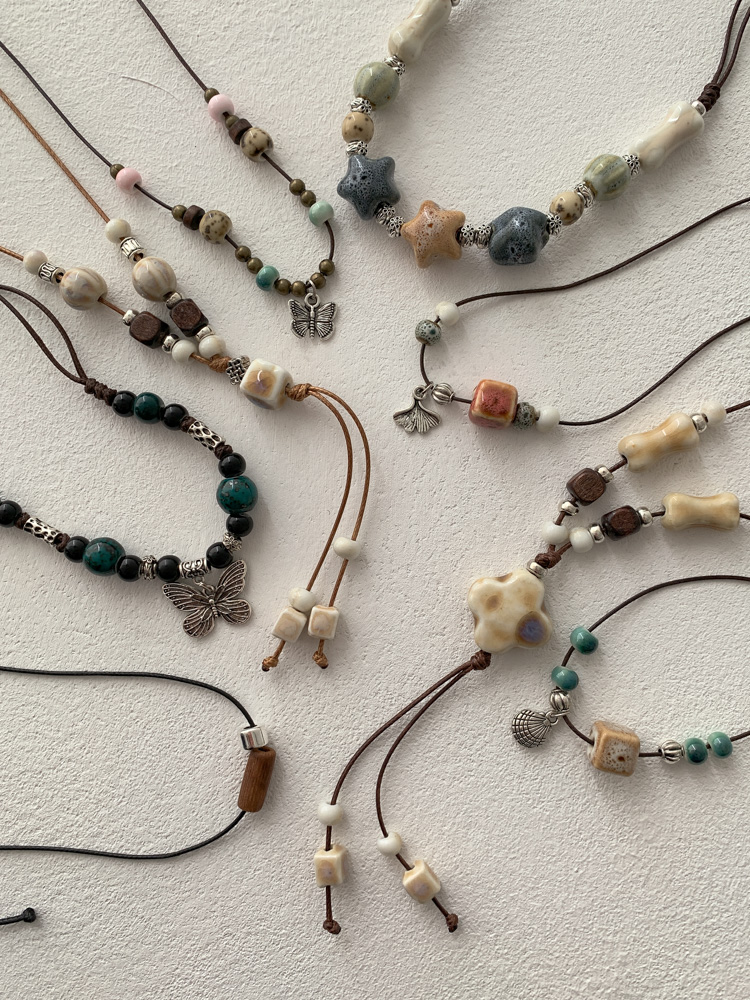 [보호시크] 세라믹 아메카지 빈티지 우드 매듭 보헤미안 끈 롱 목걸이 8type