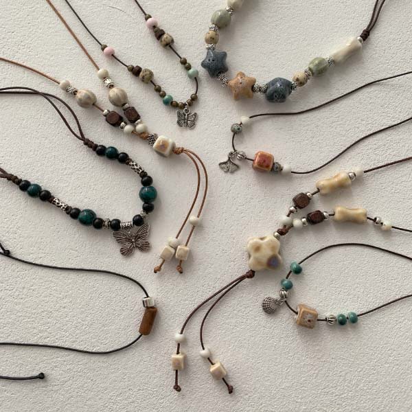 [연예인착용❤보호시크] 세라믹 아메카지 빈티지 우드 매듭 보헤미안 끈 롱 목걸이 8type