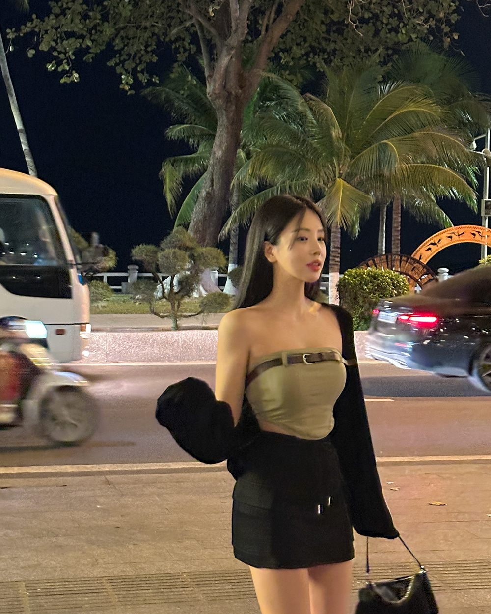 엘라 벨트 크롭 튜브탑 나시 티셔츠