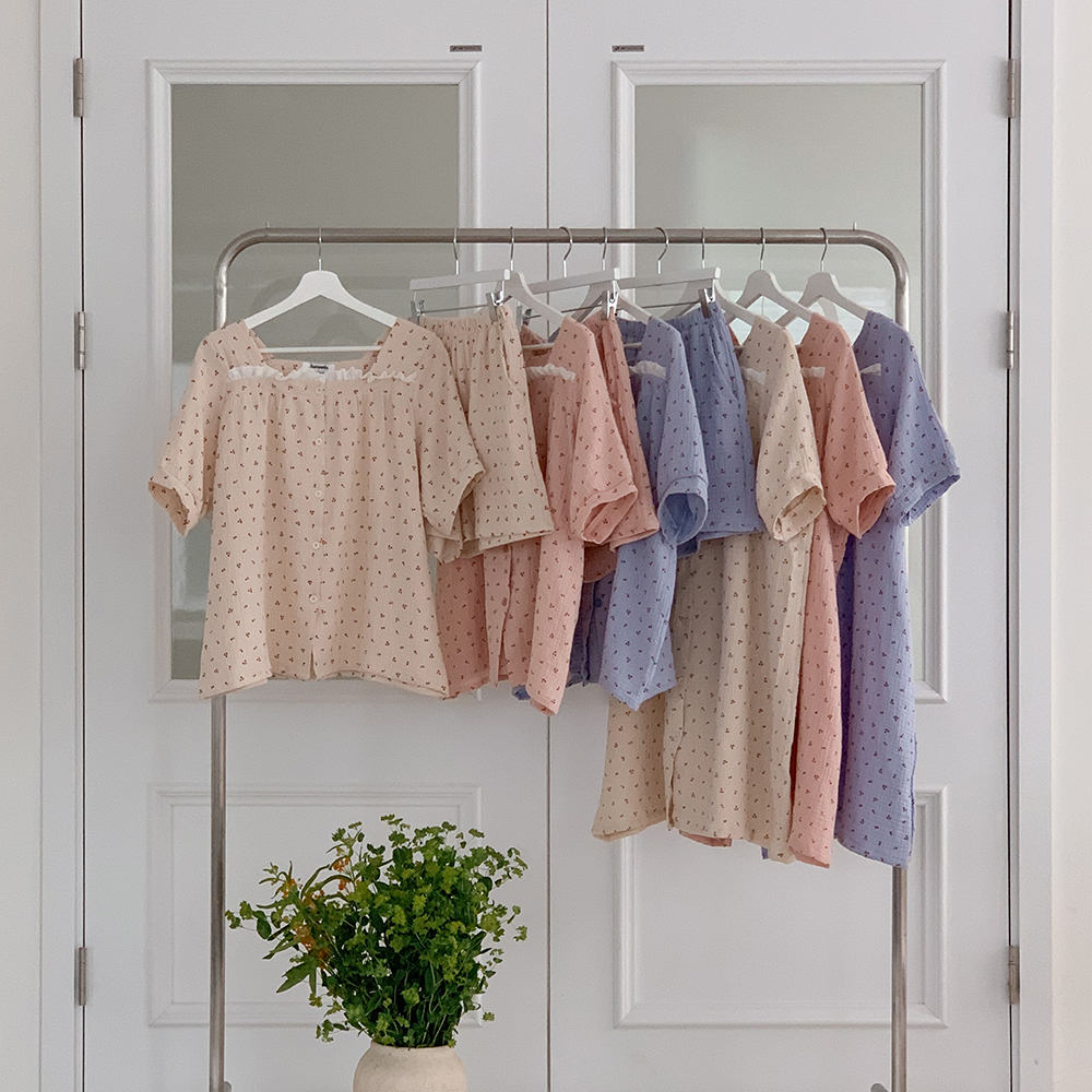 [1만장 돌파/☁코튼] J'eu 체리 프릴 요루면 반팔 파자마 잠옷 세트 3color, 2size