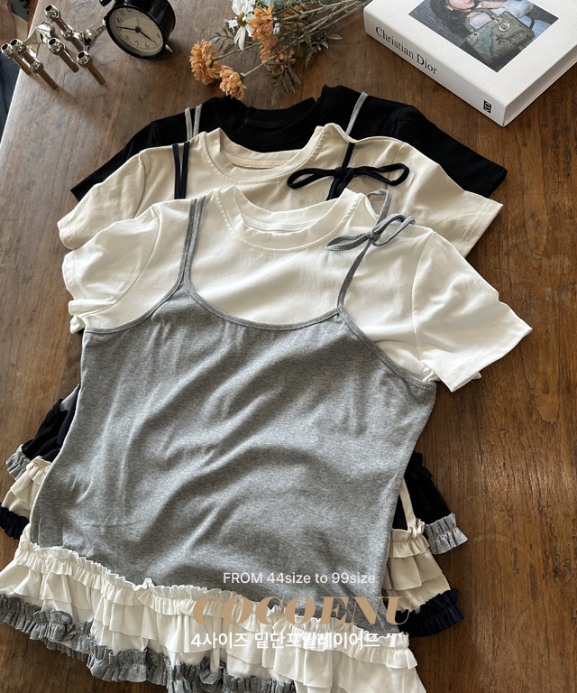 [빅사이즈]44-99 3사이즈 밑단프릴반팔티 [발레코어 레이어드 뷔스티에 코튼 스판 신학기 개강 하객 봄 데이트 데일리]