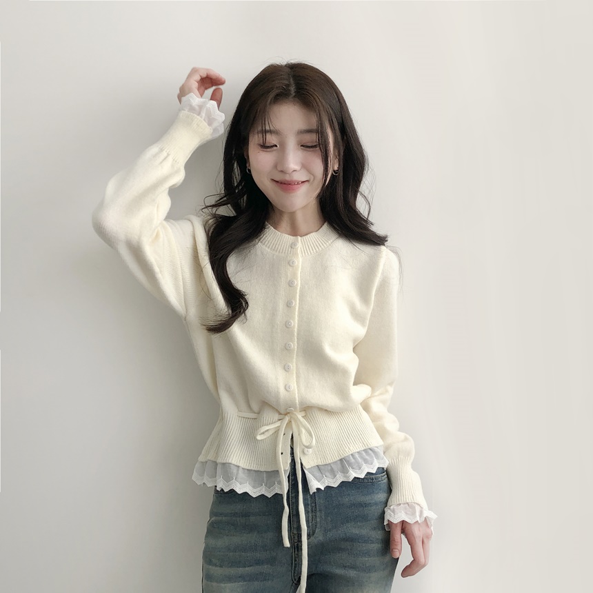 [설레이는 봄,] 레이스 리본 라운드 니트 가디건