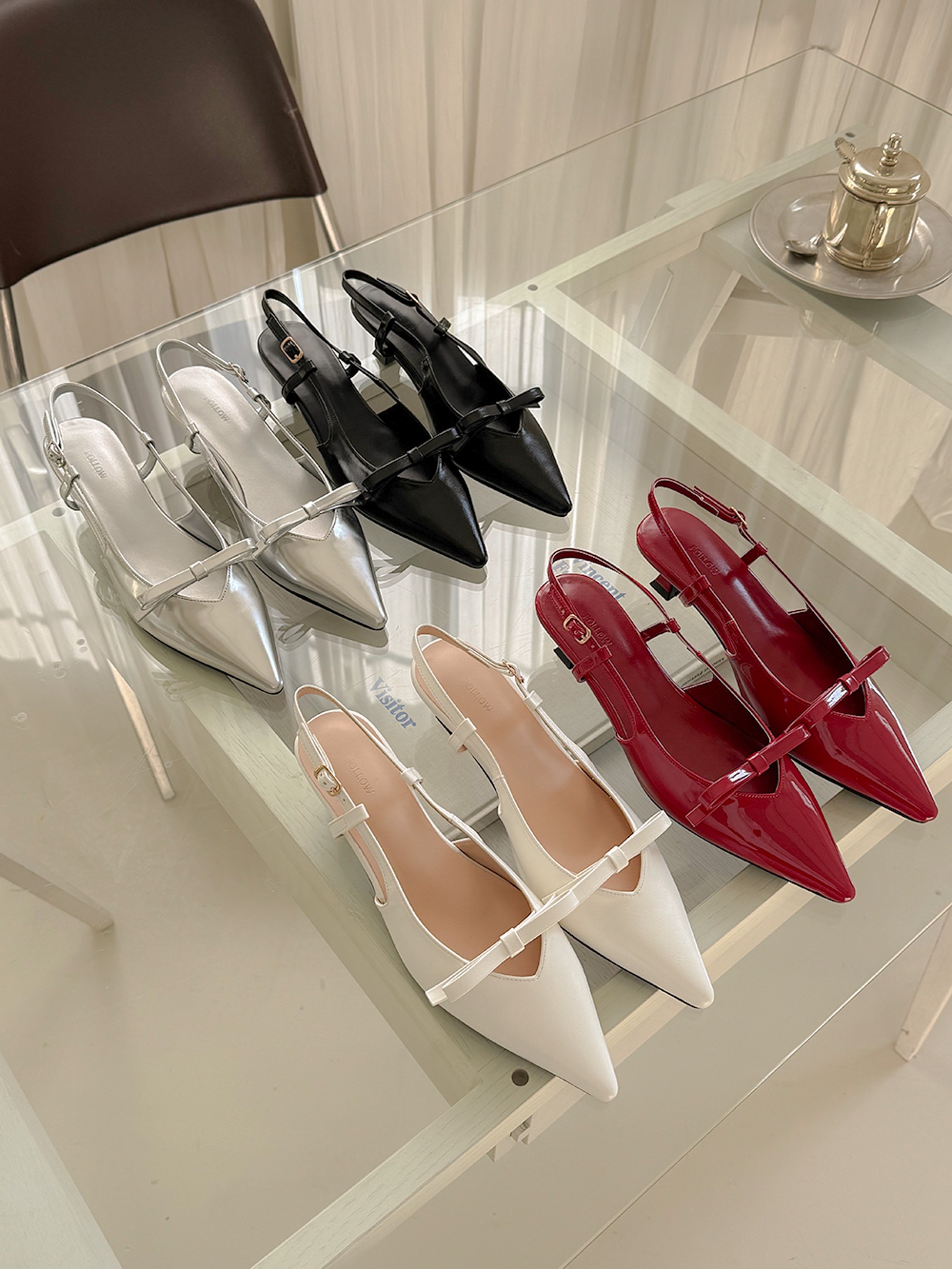 [가을🌷구두] 젠토 리본 스틸레토 유광 슬링백 힐 (4cm)