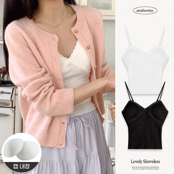 [캡내장] 슈엠 브이넥 레이스 골지 캡나시 끈나시 레이어드 민소매 브라렛 브라탑 노와이어 이너나시 no.2535