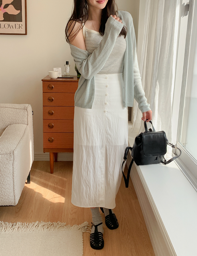 시티링 뒷밴딩 앞트임 롱 스커트 80789