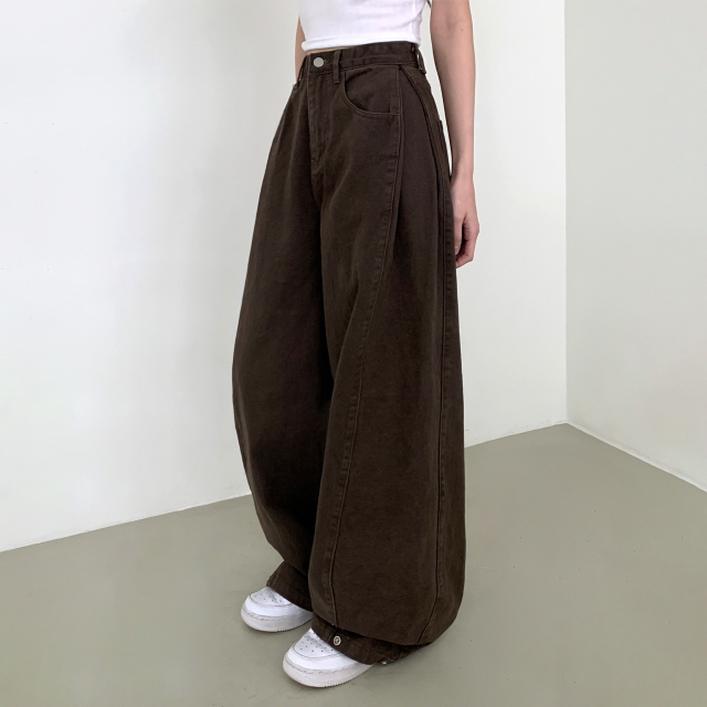 [3단기장!/히든밴딩] 리어니티 사이드 핀턱 비조 밑단 포인트 똑딱이 스냅 버튼 코튼 와이드 팬츠