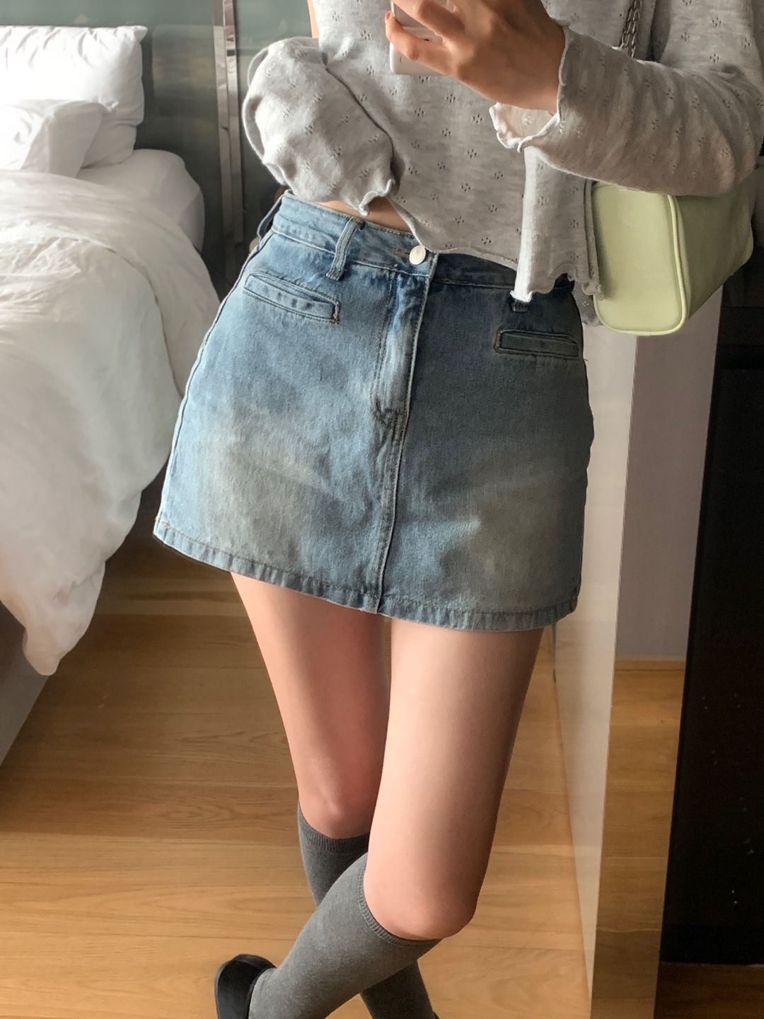 [600장 돌파!] 연청 피카 데님 미니 스커트 (속바지 내장)