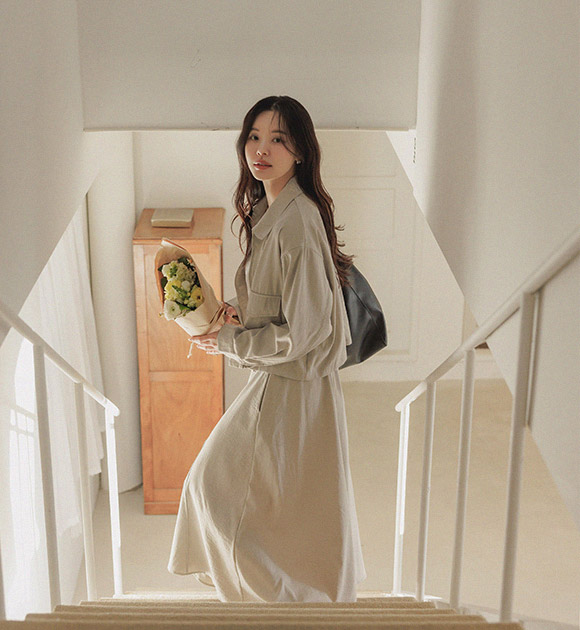 5DA31134JJ_마리아 카라집업+밴딩스커트 세트