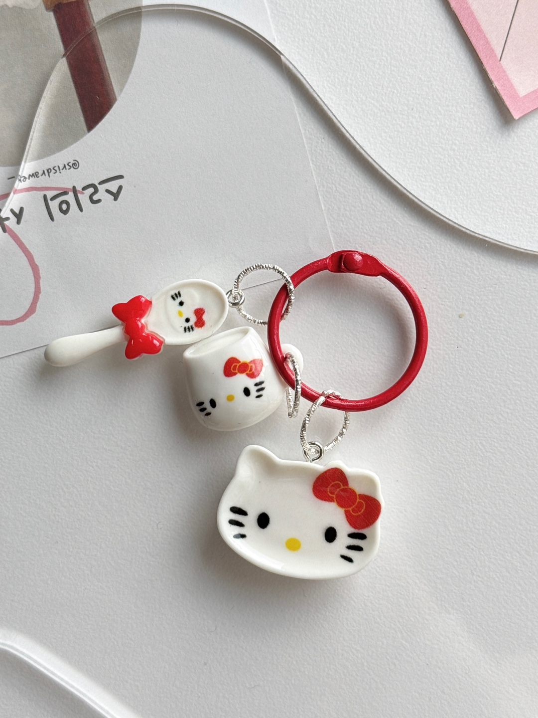 키티 식기세트 미니 키링 키홀더 숟가락 접시 머그컵
