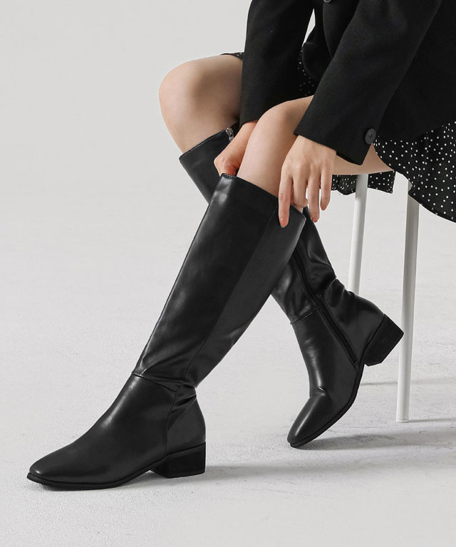 💗하비부츠 2가지둘레 스퀘어 통굽 하비롱부츠 롱부츠 하객슈즈 통넓은부츠 하객룩구두 부츠 검정구두 (스탠다드/플러스) 멜티버~