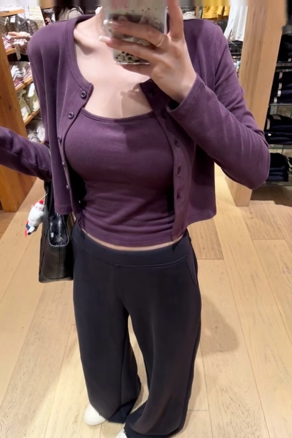 set 퍼플 긴팔 가디건 레이어드 이너 나시 투피스세트