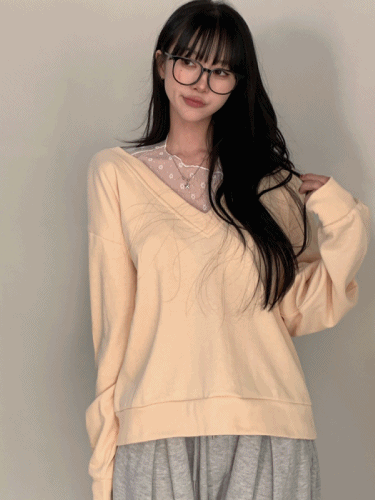 [국내제작/레이어드🖤] 딥브이 루즈 오버핏 빅사이즈 봄가을 코튼무지맨투맨 mtm - 3color