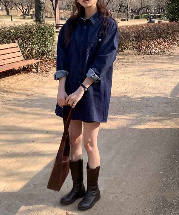[얼리어텀/made] 베니드 셔츠 원피스 (논페이드/미니/청/데님/숏/긴팔)