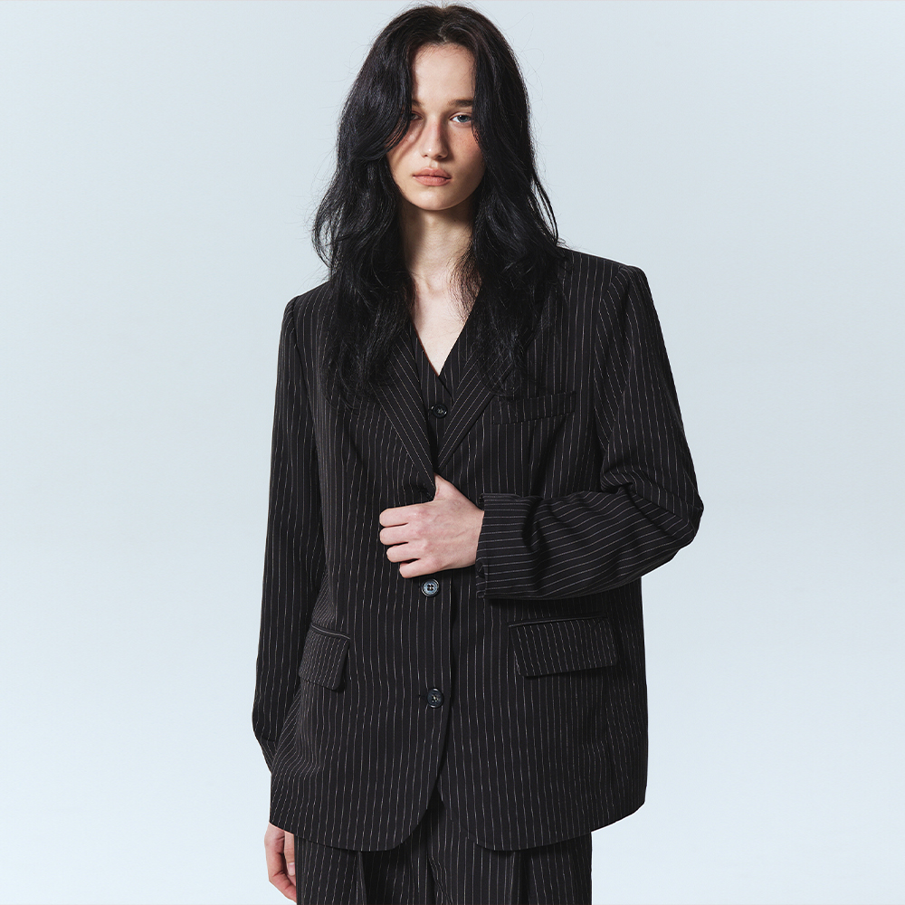 TAILORED STRIPE SINGLE JACKET_BLACK