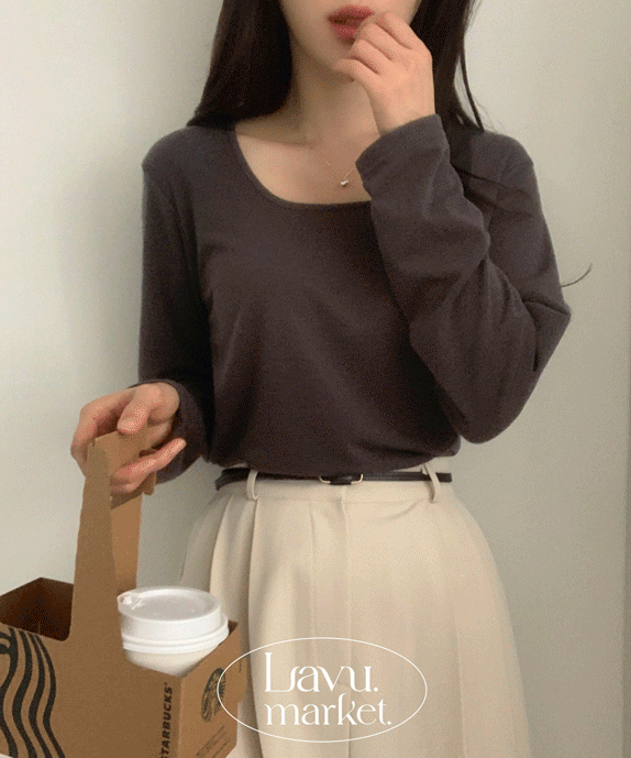 텐션있는 스퀘어&여유핏! 찰랑한 소재 스퀘어넥 부드러운 스판 여유핏 긴팔티 5color [스판티/찰랑한티/66긴팔/루즈핏긴팔/루즈핏티]