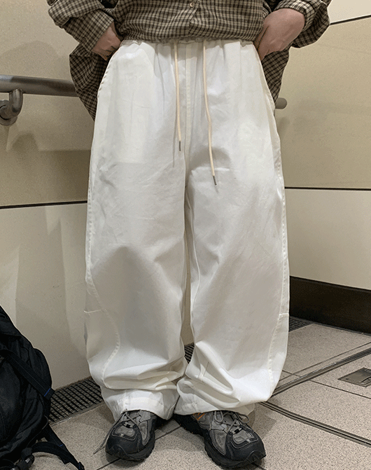 [unisex] 보이킨 밴딩 스트링 커브드 코튼 팬츠 (5color)