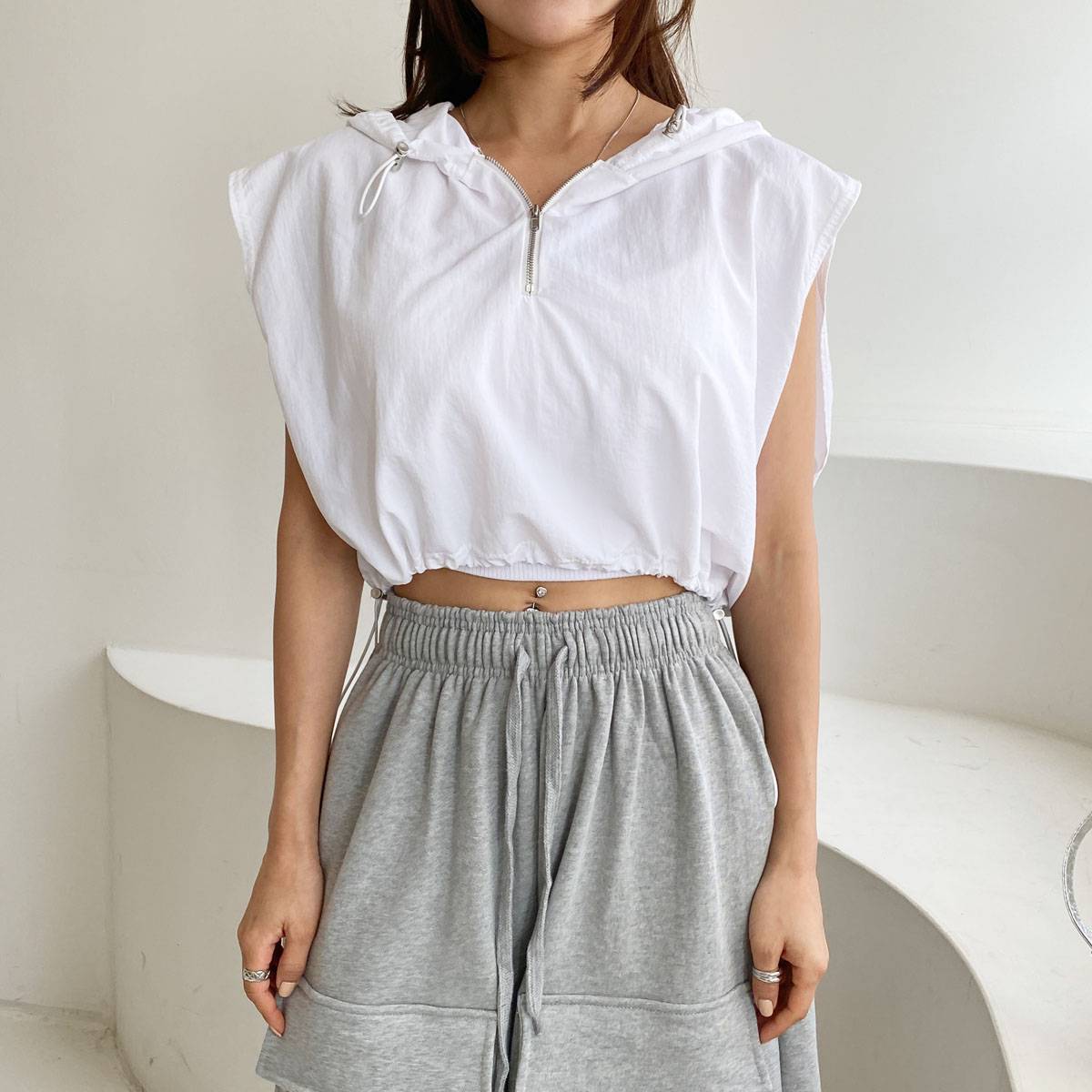 오픈조끼 바람막이 바스락 크롭 여자 후드민소매 배꼽티